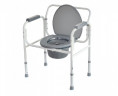 Складное кресло-туалет с широким сиденьем выполнено из прочного алюминиевого сплава. Сиденье регулируется по высоте, что делает его использование максимально удобным для людей разного роста.  Кресло-туалет способно выдерживать максимальную нагрузку до 100 кг.