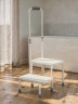 Каркас выполнен из металлического сплава и имеет специальную обработку от возникновения коррозийных процессов. Ступени обиты винилскожей, устойчивой к влаге и повреждениям. Для дополнительной устойчивости и защиты напольного покрытия имеются пластиковые заглушки, которые при необходимости легко сменить.